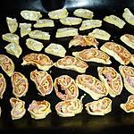 5 / Façonnage : Repliez les grands côtés du rectangle vers le centre de façon qu'ils se rejoignent au milieu. Repliez chacun des côtés encore une fois pour avoir 4 épaisseurs. Fermez et collez avec l'oeuf battu. Coupez le rouleau de pâte en 12 tranches d'environ 1 à 2 cm d'épaisseur.