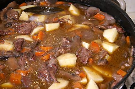 Verser le tout avec la viande, vérifier l’assaisonnement (sel et poivre) et laisser cuire doucement pendant 3 à 4 heure selon gout.