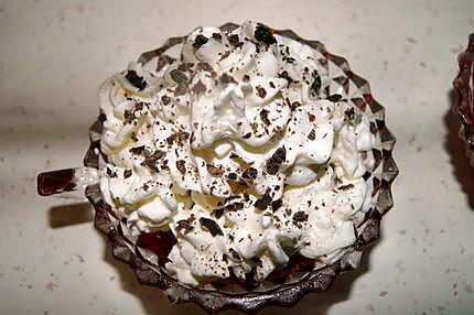 Couvrir généreusement de chantilly, voir les recettes en cliquant ici pour la recette au siphon, ou cliquer ici pour la recette à la main,