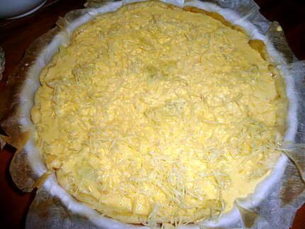 Verser le mélange oignons et lardons sur le fond de la tarte.