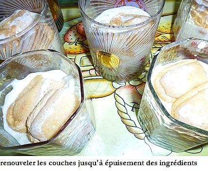 Au fond un biscuit coupé ou émietté puis une couche de fraises entières si elles sont petites ou coupées en morceaux, incorporer la crème au mascarpone, et renouveler les couches.