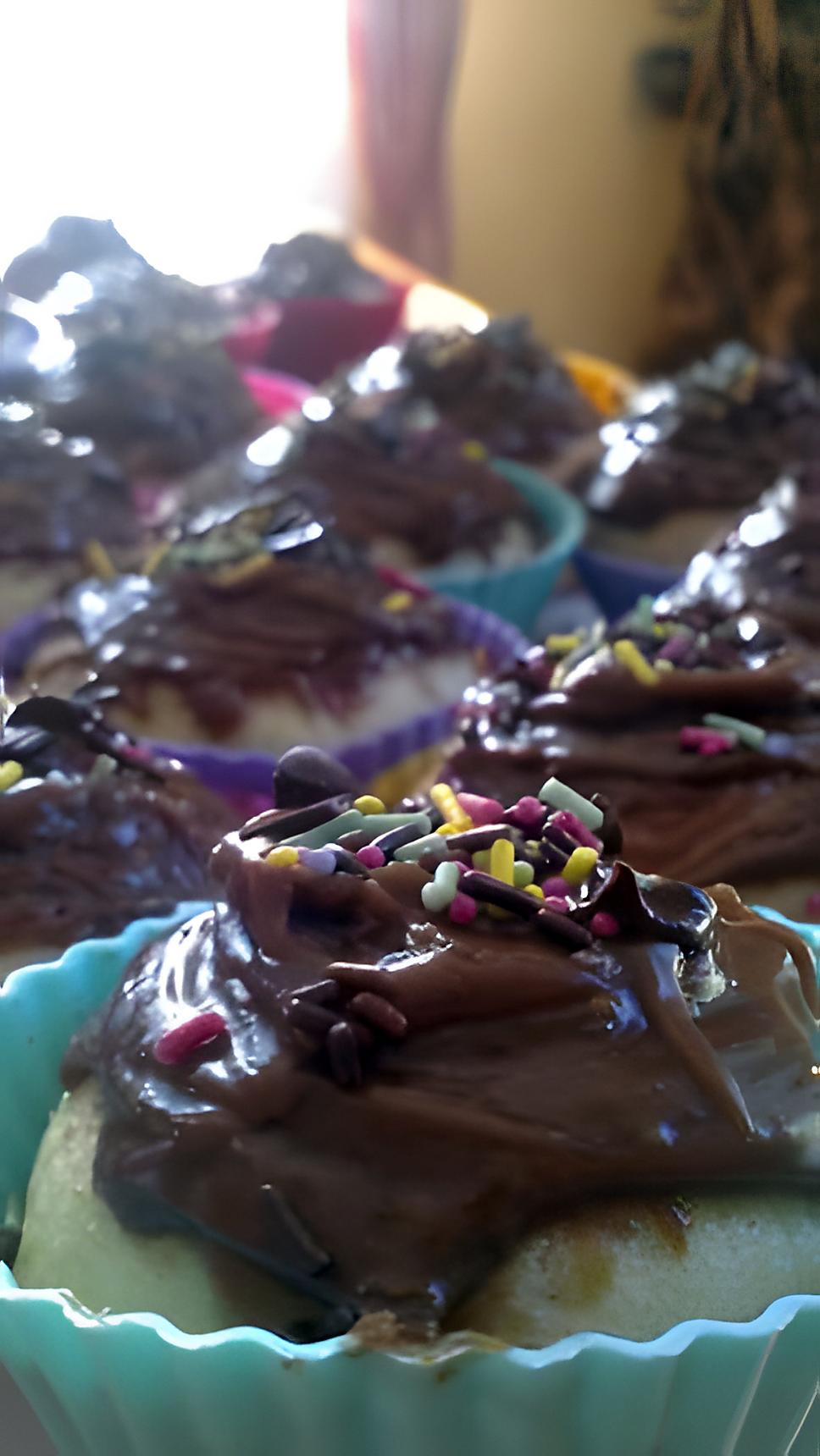 (Pratiquement la même recette que les cupcakes amandes, nappage chocolat au lait).
