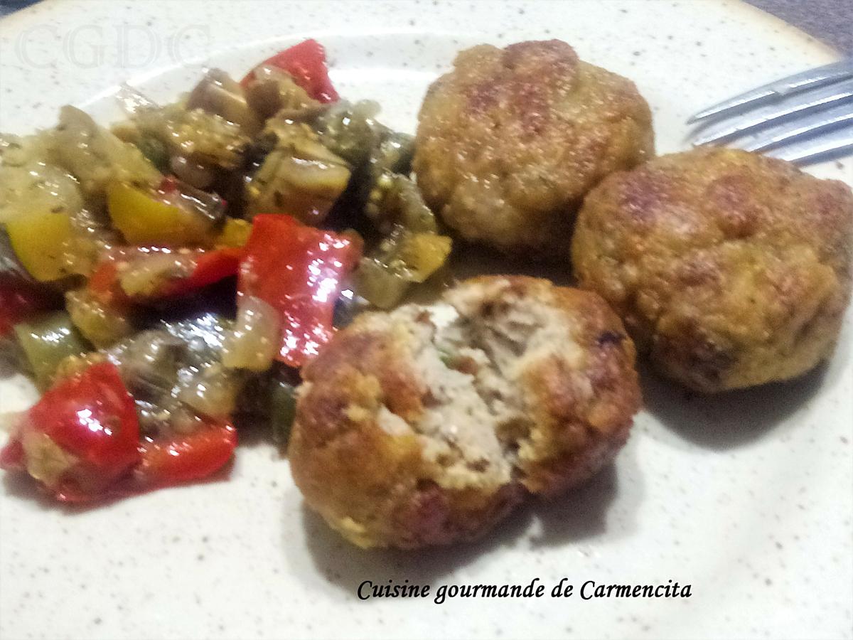 Mots-clés: aubergines, Boulettes de viande, poêlée de légumes, pois chiche, poivrons