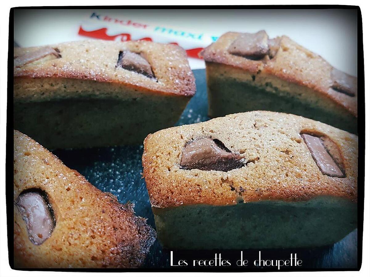 Verser la préparation dans des moules à financiers beurrés et farinés. Par dessus ajouter le reste de Kinder coupés en petits morceaux.