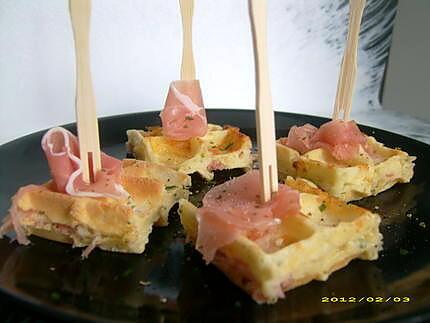 Mots-clés: apéro, apéro entres amis, chèvre, farine, gaufres, jambon fumé, lait, oeufs