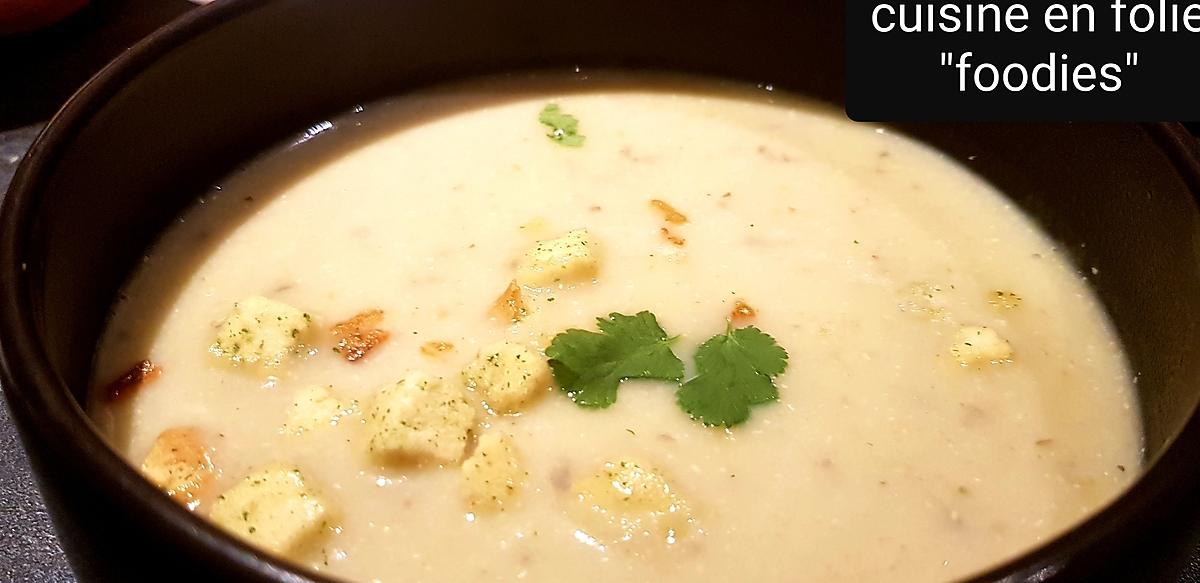Au moment de servir, ajoutez le lait concentré non sucré et des croûtons.