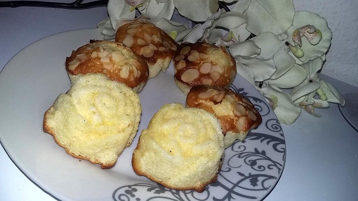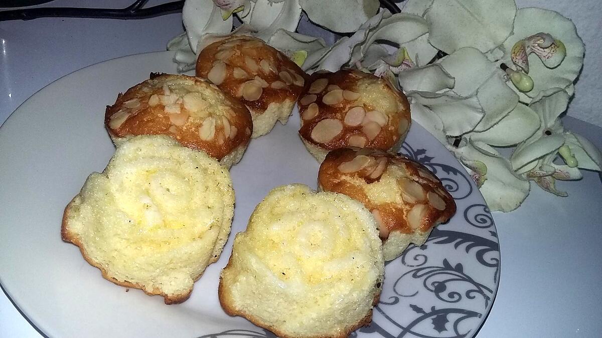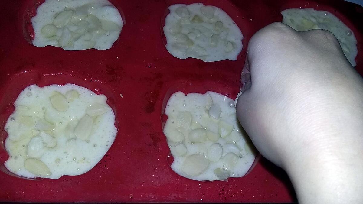 Verser des cuilleres de pate dans chaque moule et parsemer d'amandes effilées.