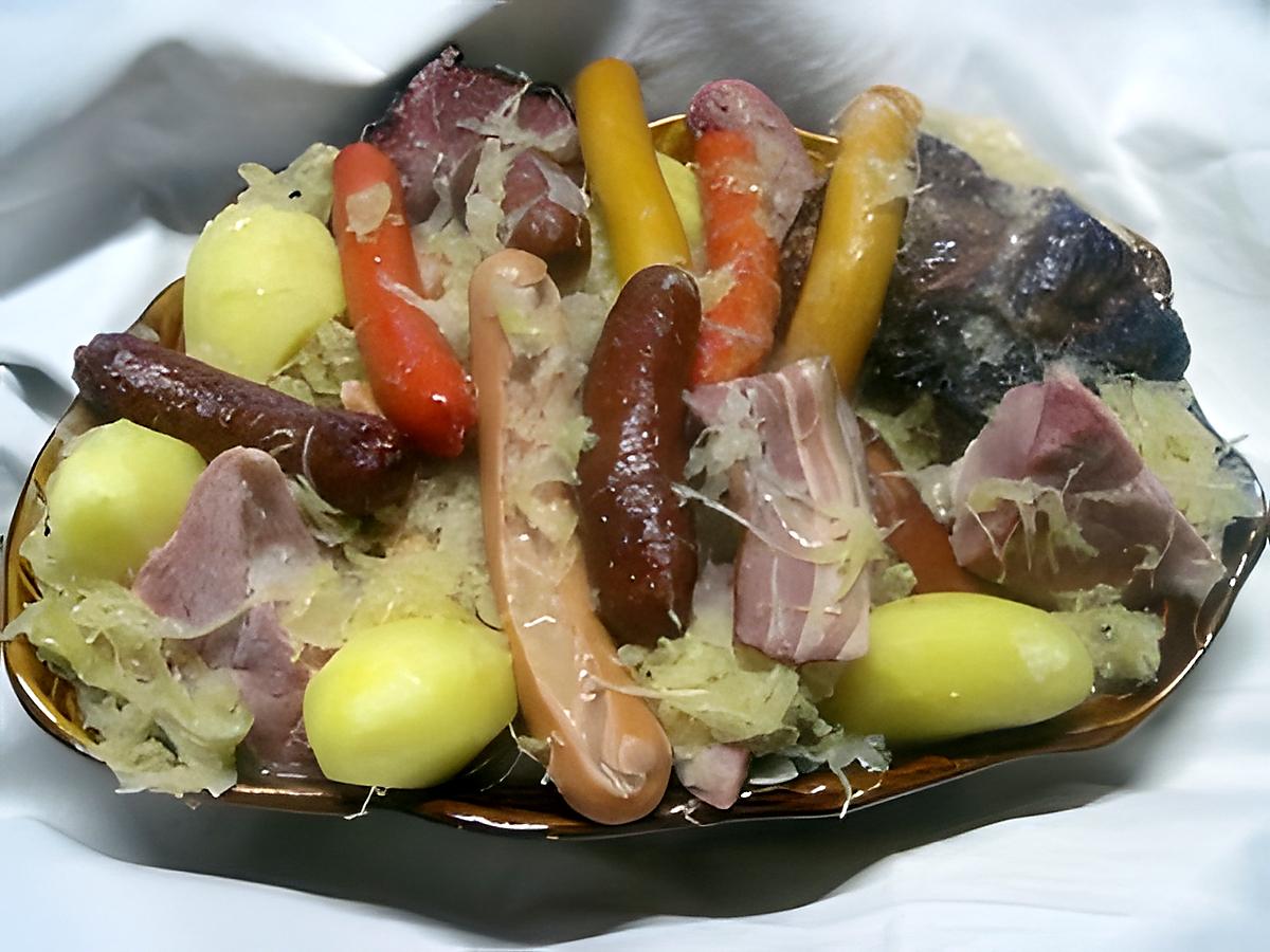 Mots-clés: ( riesling )., choucroute crue.échine de porc.saucisses fumées.poitrine fumées.snacks d'Alsace.saucisses Francfort.talon de jambon.pommes de te