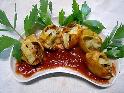 Pâtes Lumaconi au mascarpone. sardines. parmesan au four.