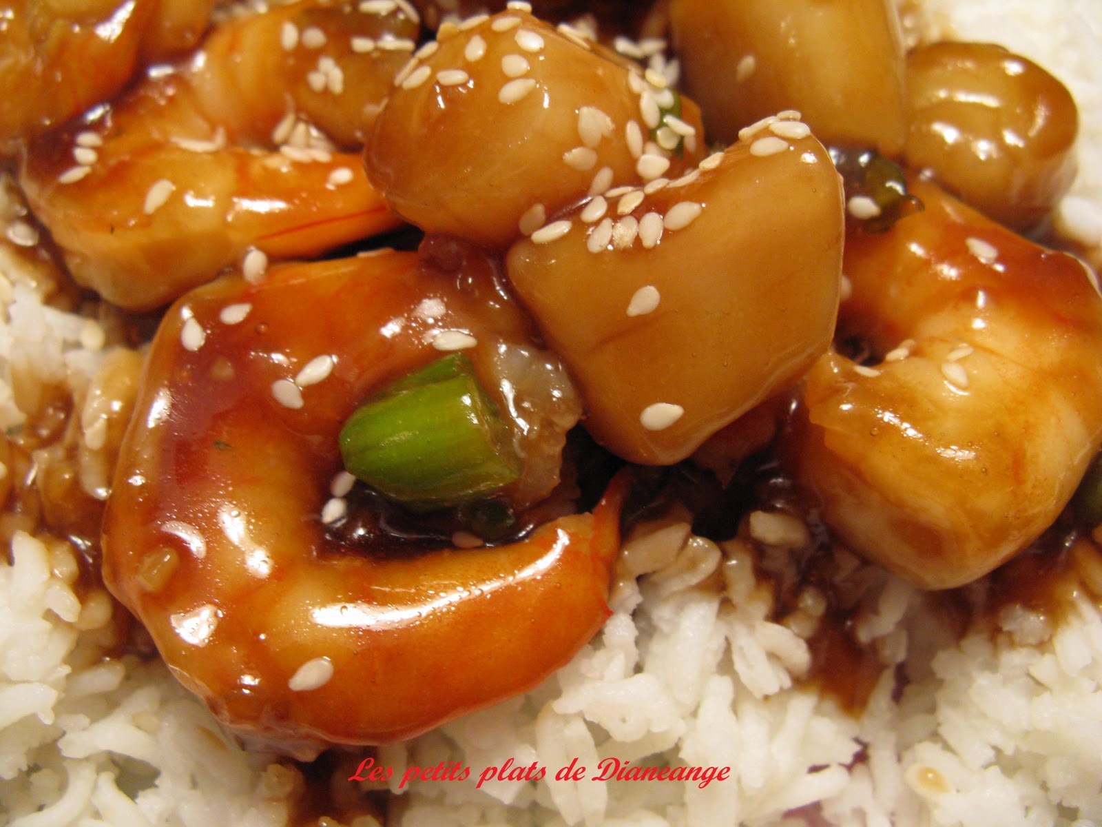 Mots-clés: crevettes- pétoncles - huile canola- miel -sauce soya- vinaigre riz- échalotes -sambal olek