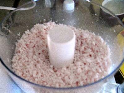 Ajouter les amandes et re-hâcher : les amandes doivent être grossièrement écrasées, sans plus.
