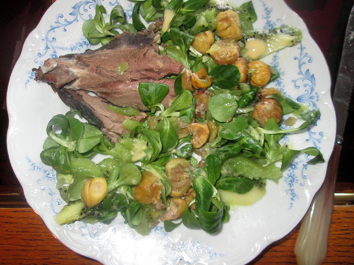 Reste roti chevreuilDe chataignesMache vinaigrette kiwis