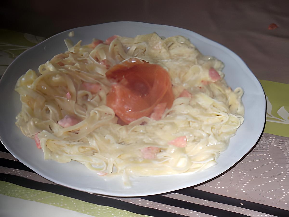 Mots-clés: creme fraiche, dés de saumon, parmesan, pates, saumon