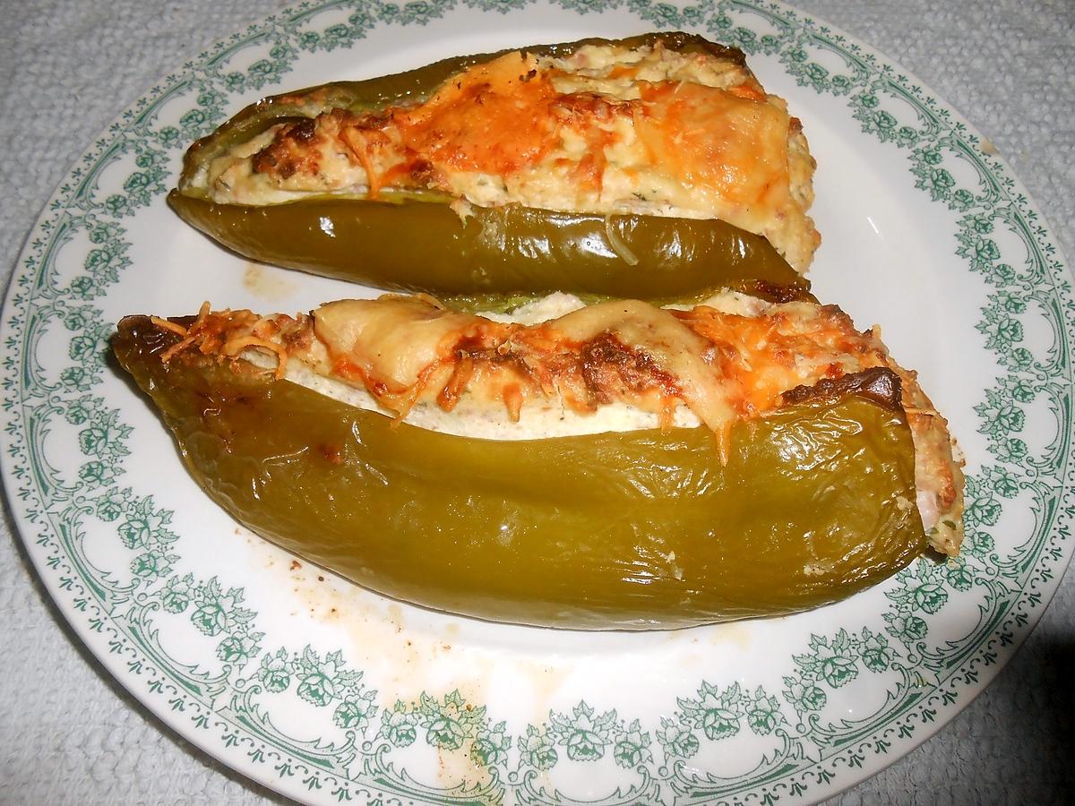 Coupez le poivron en deux et remplir chaque moitie de farce et mettre au four 25 minutes.