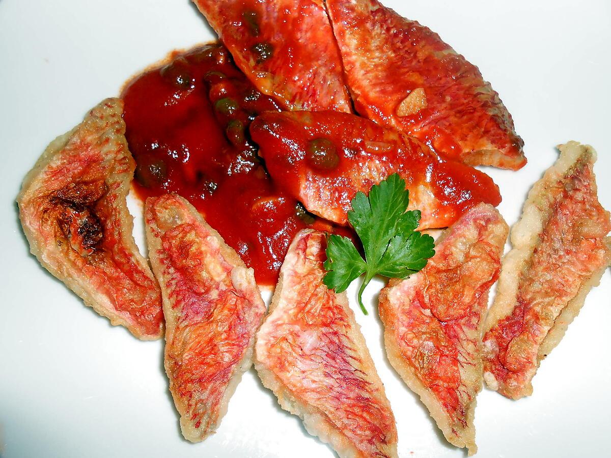 Preparez la sauce tomate dans une casserole un peu d'huile d'olive avec l'ail et le persil les capres et piment si vous aimez. Laissez mijoter 20 minutes et y mettre les rougets. Une dizaine de minutes.