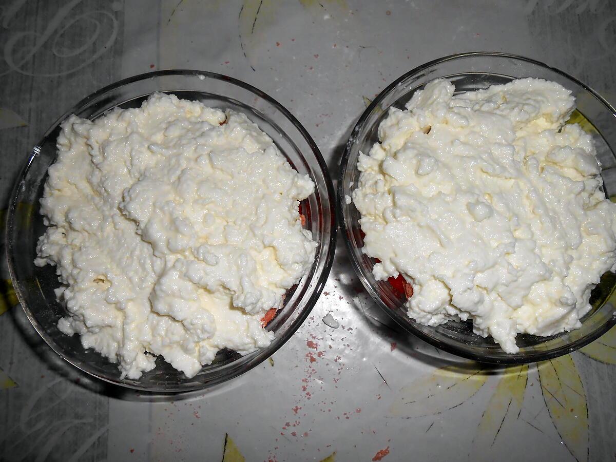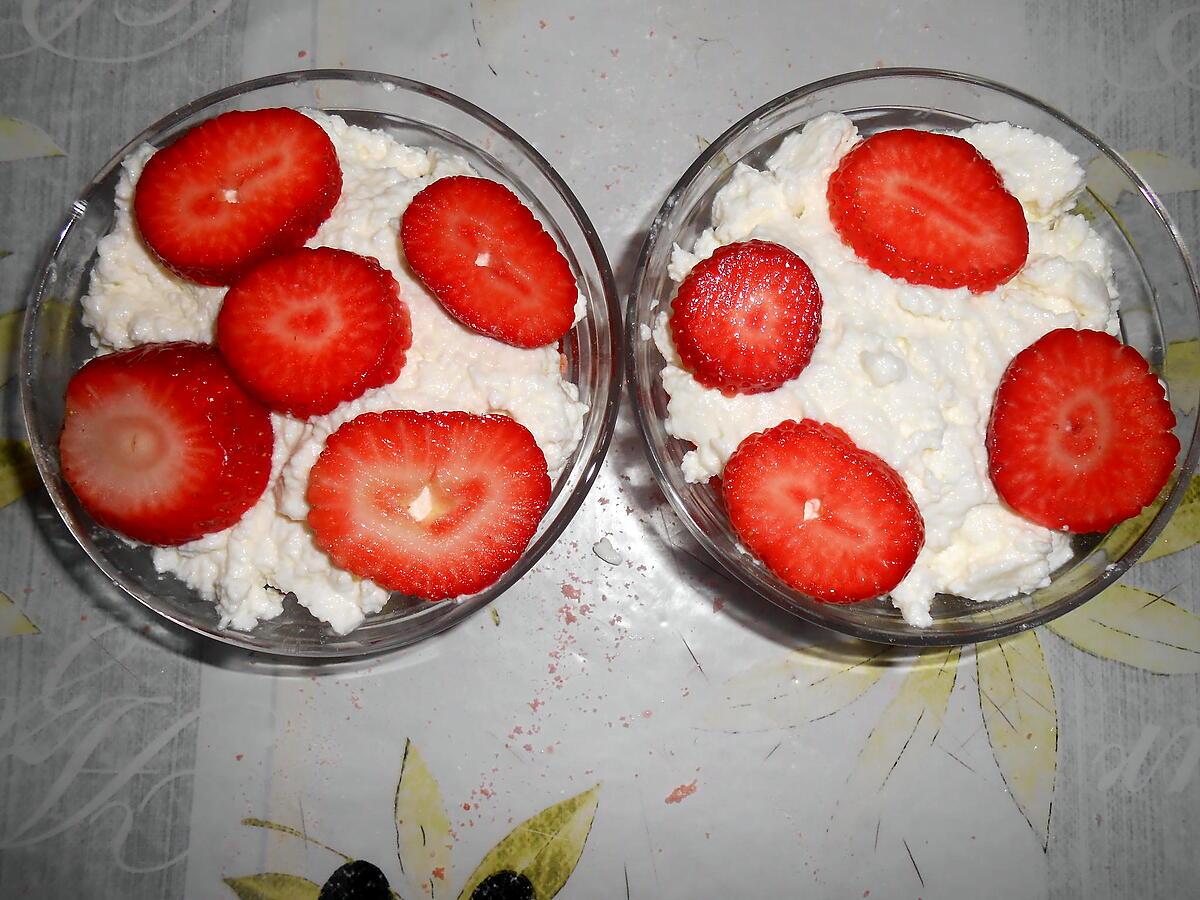 Au fond de chaque coupelle mettre un biscuit rose de reims emiette posez dessus des fraises recouvrir avec un autre biscuit emiette et posez dessus la moitie du brocciu puis quelques rondelles de fraises.