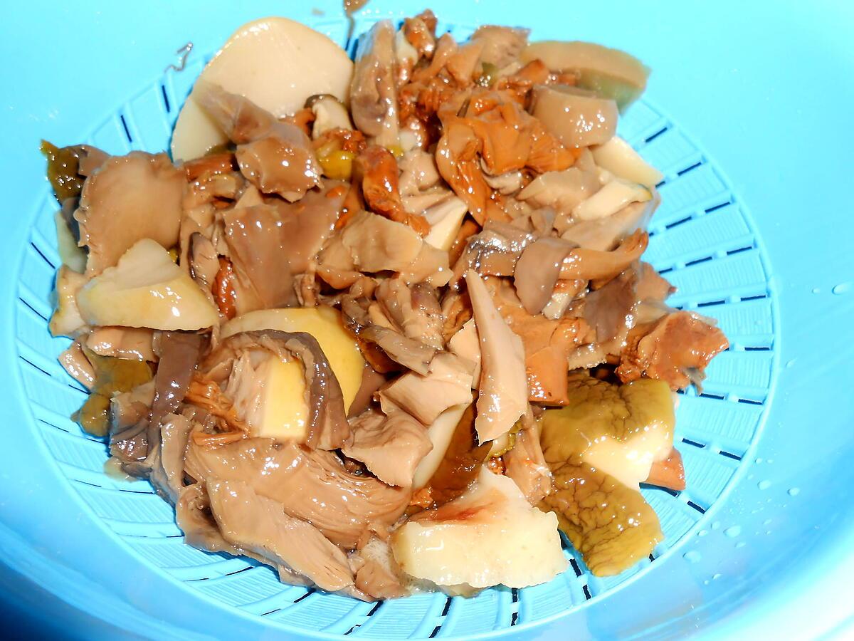 Ajoutez les champignons mixtes un petit peu d'eau et laissez encore mijoter 15 minutes.