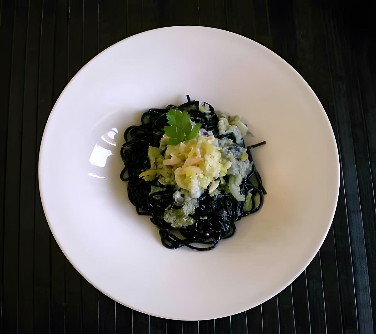 Spaghetti noirs, avec sauce au crabe citron et gingembre frais