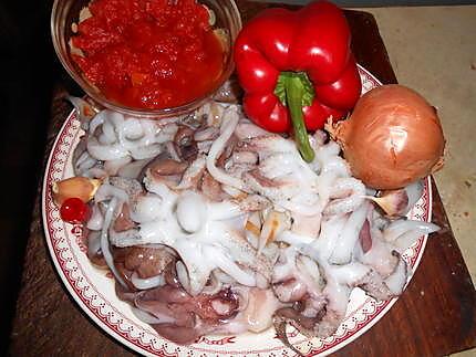 Mots-clés: huile d olive, oignon, poivron rouge, riz, riz arborio, safran, seiches, vin blanc