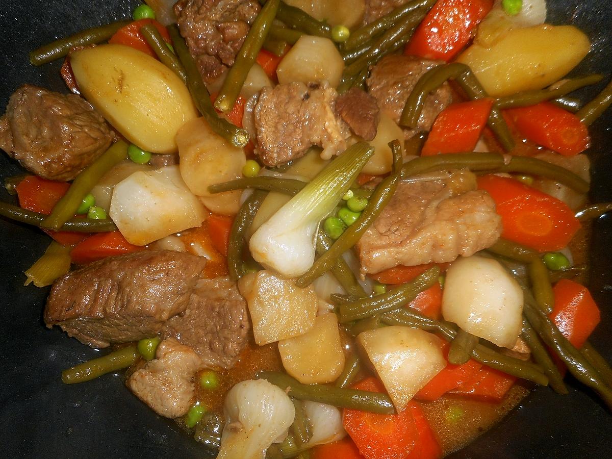 Mots-clés: beurre, carottes des sables, haricots vert, jus de veau, navets, oignons nouveaux, petit pois, pommes de terre, sauté de veau, tendron de veau, vin blanc