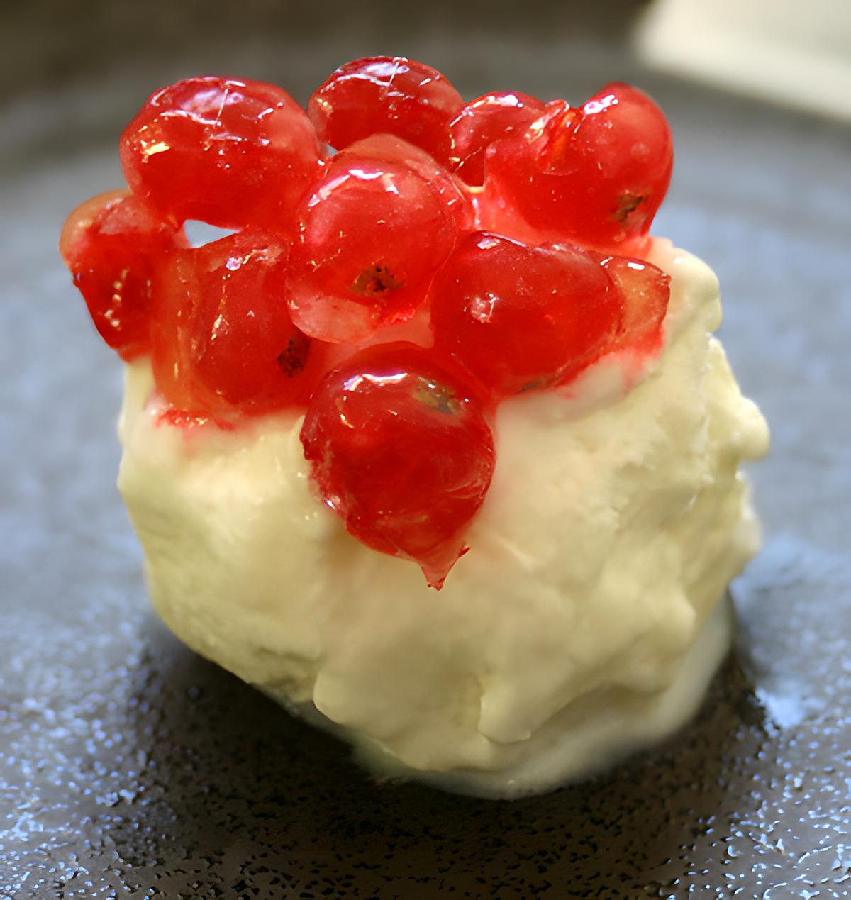 Pour le caviar de groseilles croustillantes100 g de grosses groseilles200 g de sucre20 cuillères à soupe d’eau