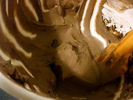 A l'aide d'une spatule recouvrir les bords du gâteau de la mousse au chocolat restante...