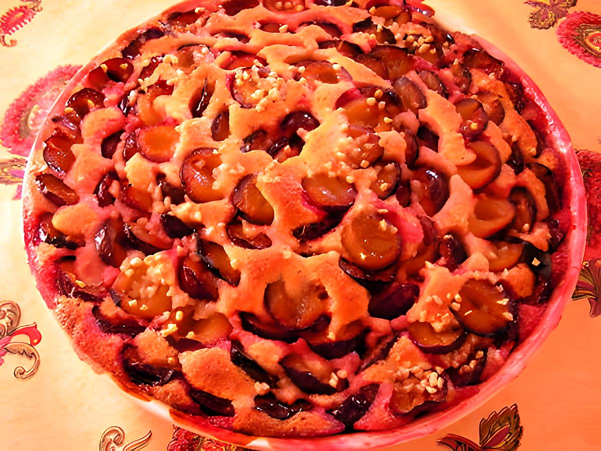 Laver les prunes, les couper en deux et les dénoyauter. Emietter finement la pâte d’amande et la pétrir avec le beurre. Ajouter le sucre, le yaourt, la semoule, les œufs, le sel, l’arome aux amandes et bien mélanger le tout. Mélanger la farine avec la levure chimique et incorporer le mélange peu à peu. Lisser la masse sur une plaque préalablement beurrée, répartir les moitiés de prunes sur la surface, les presser légèrement et les saupoudrer d’amandes. Cuire à four préchauffé à 180° pendant 25 mn. Laisser refroidir le gâteau et le saupoudrer de sucre glace avant de servir.