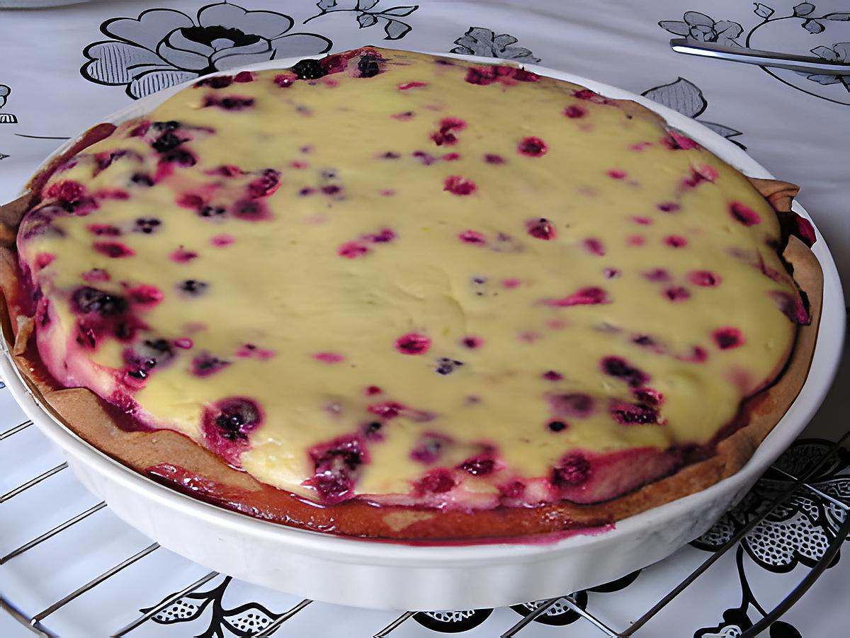 1 rouleau de pâte sablée500 gr de faisselle330 gr de fruits rouges frais ou surgelés2 oeufs100 gr de sucre100 gr de crème fraîche épaisse1 cuill. à soupe rase de MaïzenaLe zeste râpé d’1 citron on traitéFarine et beurre pour le moule