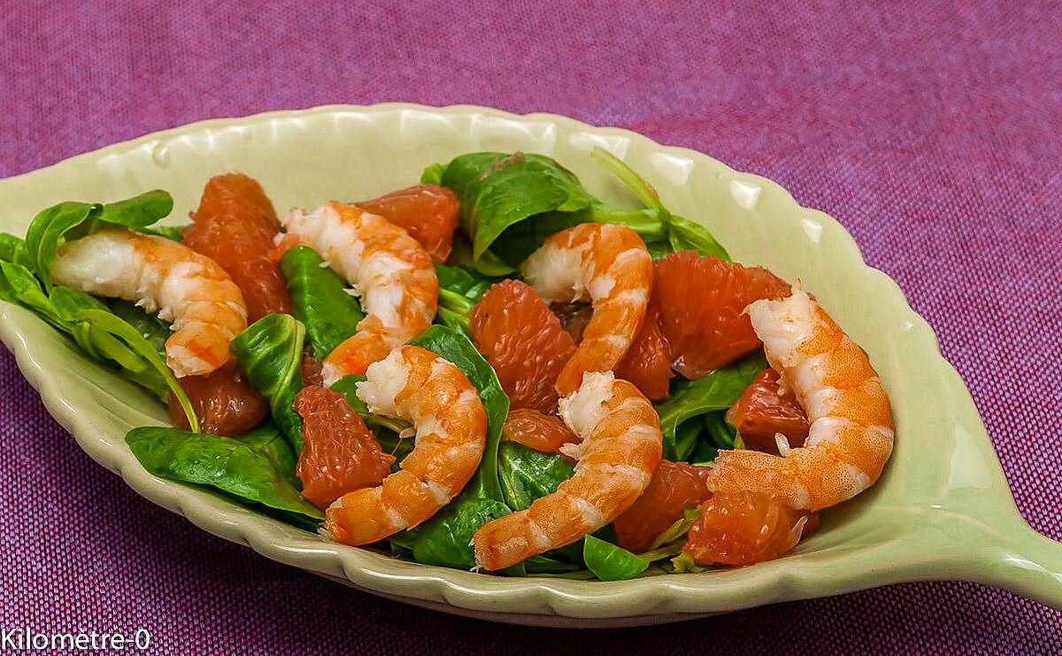 Une poignée de mâche Un pamplemousse Une douzaine de crevettes