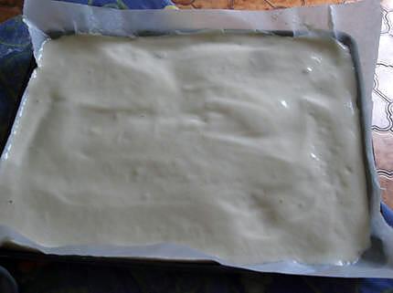 Étape 4Mettre du papier sulfurisé sur une grande plaque et verser votre biscuit, en l'étalant de manière uniforme.