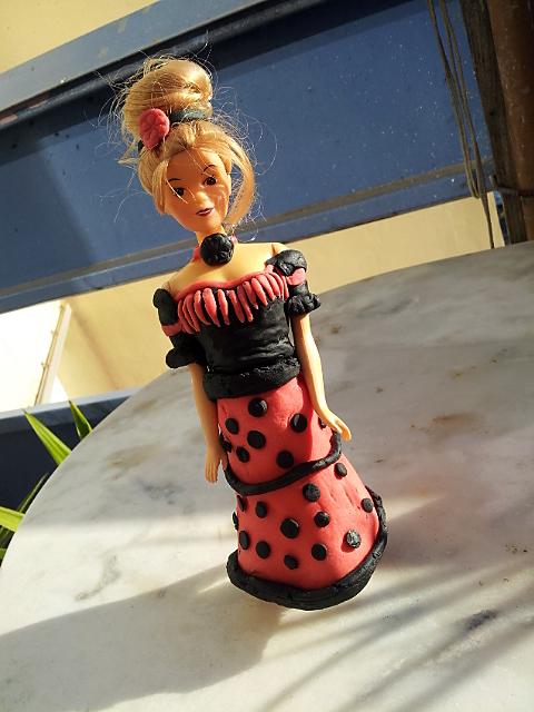 Dans un monde où les sucreries s'épanouissent et les gâteaux se parent de mille feux, la Barbie Princesse Espagnole s'impose comme la star des fêtes. Son buste étincelant attire tous les regards. Sa robe flamboyante, confectionnée en pâte à sucre rouge et noire, est prête à faire sensation. Pour l'anniversaire d'une cousine, un magnifique buste de Barbie est préparé. Il sera délicatement disposé sur le gâteau au dernier moment pour éviter qu'il ne s'affaisse sous le poids de la robe.
