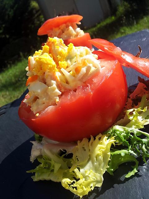 Étape 3Farcir les tomates de la salade et disposer au frigo avant de servir bien frais.