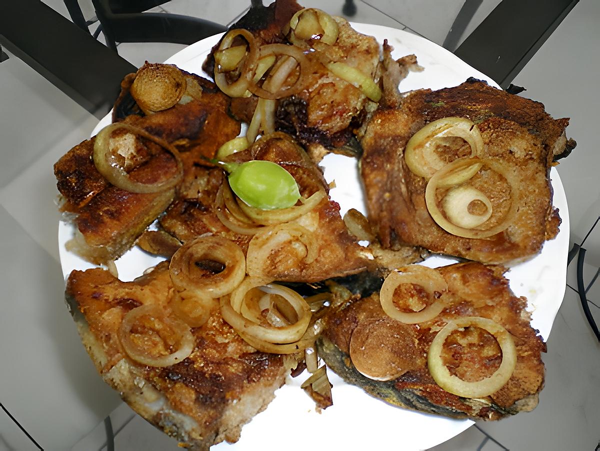 6 Darnes de thons frais 2 Citrons verts 3 G d'ail 1/2 Càc de girofle en poudre 2 Piments végétariens Sel et poivre. 200G de farine de blé De l'huile pour la friture 3 Oignons Des câpres Du vinaigre blanc ( 6 càs )