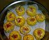 Prendre un carré de pâte puis déposer au centre un bonne cuillère à café de la farce et repliez les 4 coins en tournant comme pour former une bourse puis couper le dessus pour laisser apparaître la farce voir la photo.