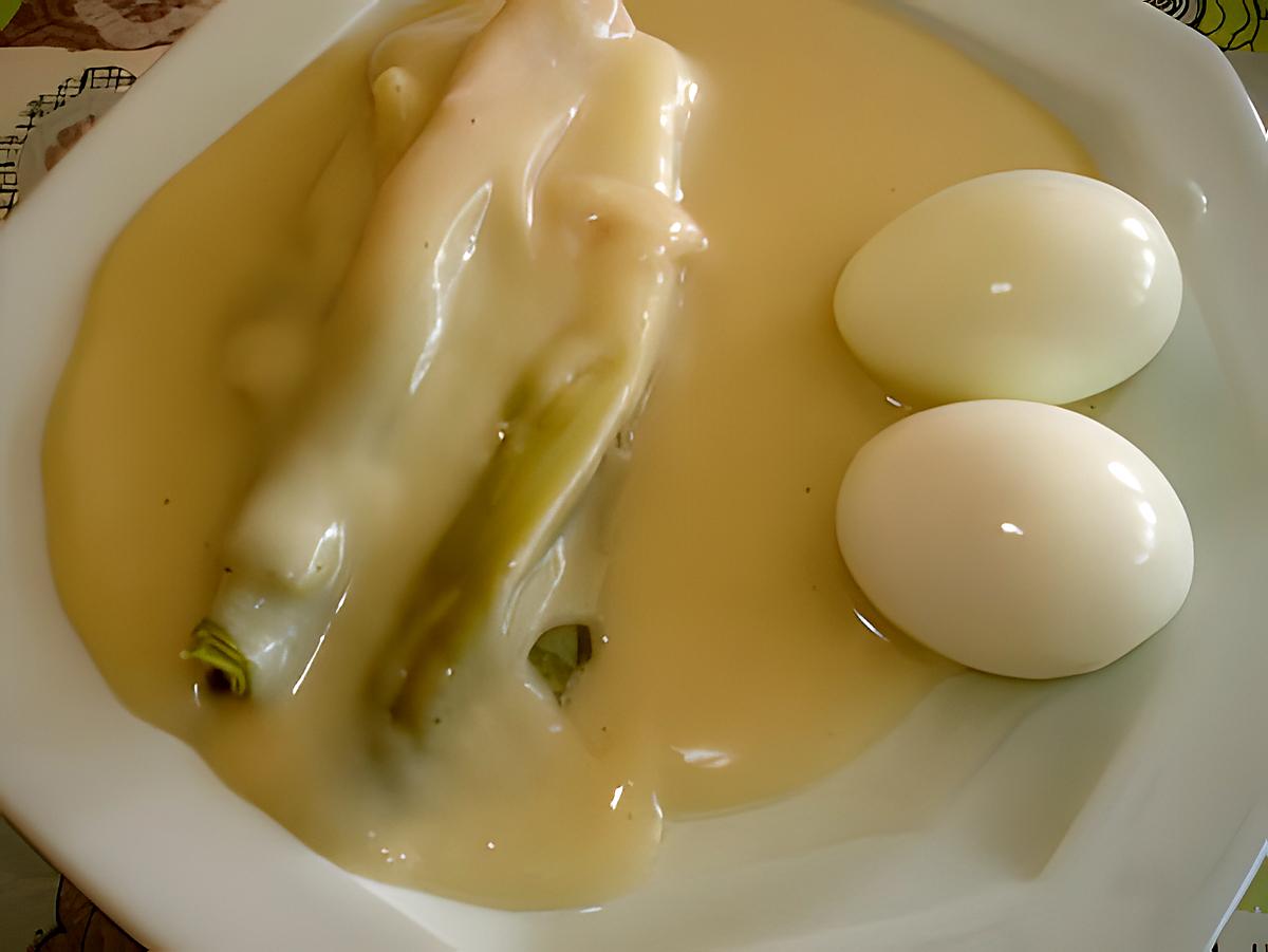 Étape 7Verser la sauce blanche et servir avec des œufs cuits durs.