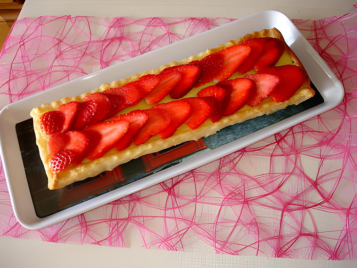 Une belle journée ensoleillée appelle une tarte aux fraises. Ce dessert frais et convivial fait toujours plaisir. La pâte feuilletée est croustillante, et la crème est onctueuse.