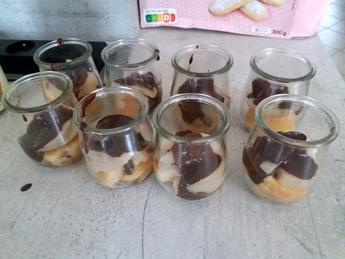 Étape 5Répartir la sauce au chocolat dans chaque verrine.