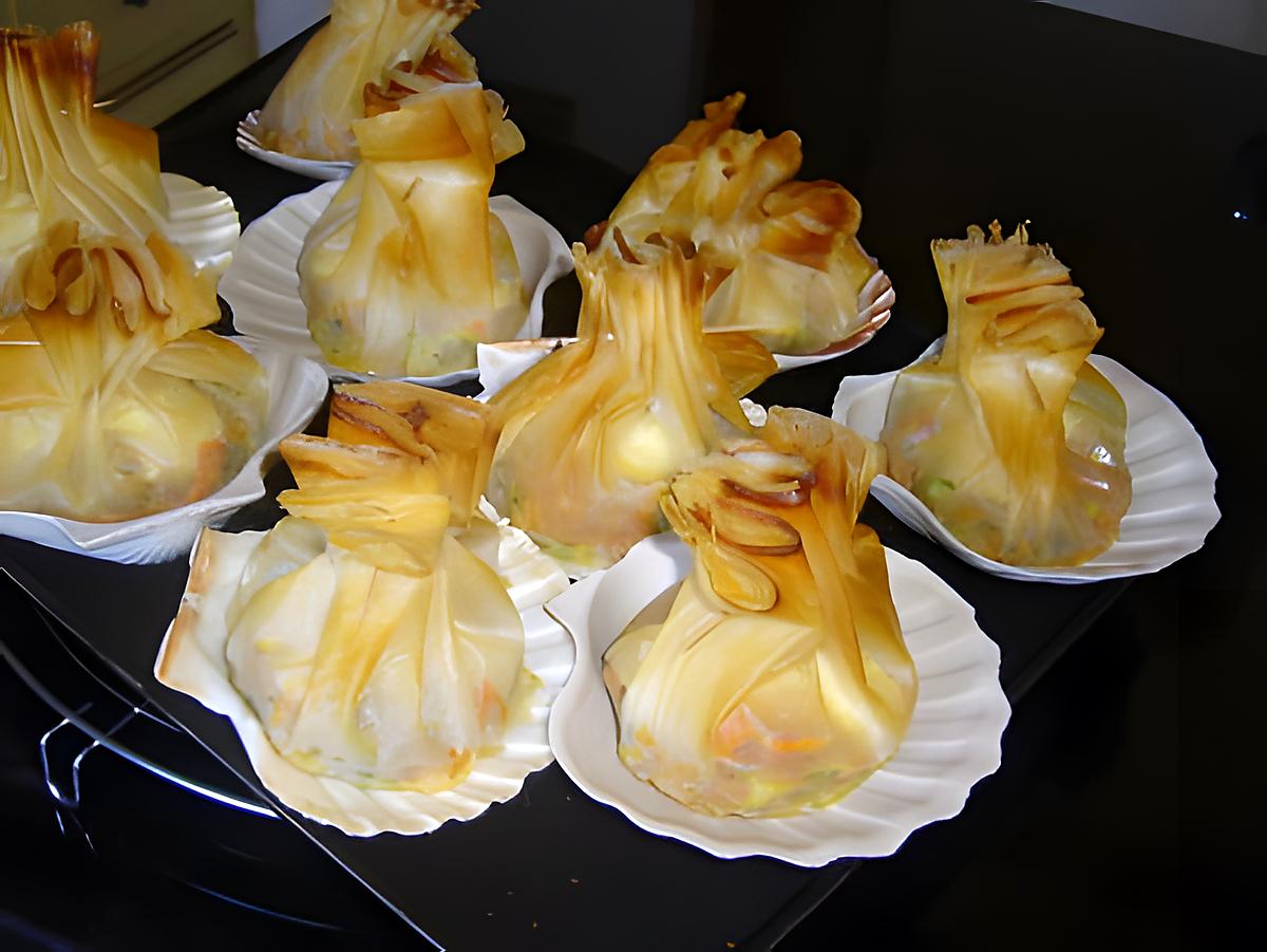 Moi j'ai fait l'aumonière à midi,c'est délicieux,la 1 brick,c'est passé au travers,après j'ai levé un peu de jus de la préparation au travers d'1 passoire,ça a tenu et c'était très bon,digne d'1 restaurant.Merci pour cette recette?