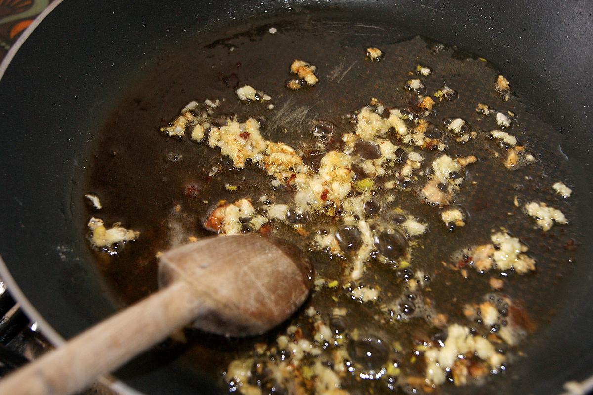 Dans la poêle de cuisson, après avoir épluché les gousses d'ail, les écraser et les faire revenir, puis ajouter une grosses cuillère de moutarde (n'ayant pas de moutarde à l'ancienne, j'ai mis de la moutarde ordinaire), bien mélanger, puis ajouter le jus du citron et le vin blanc. Ainsi que le reste du persil (sauf un peu pour garder et faire la garniture). Bien mélanger sur feu doux. Ajouter les escalopes que vous avez mis de coté. En les retournant de temps en temps.