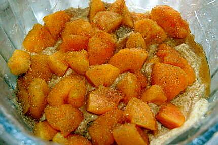 Mettre la moitié du sucre vanillé. Mettre les cubes sur la pâte puis l'autre moitié du sucre vanillé.