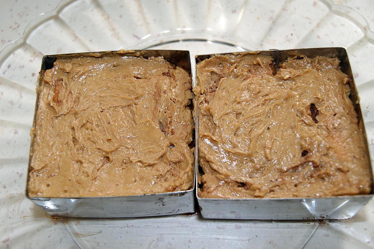 Puis mettre les chutes des gâteaux au milieu (y compris les chutes des gâteaux qui vont servir pour le dessus).