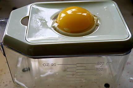 Puis séparer les blancs des jaunes, et les monter en neige très ferme avec 60 g de sucre.