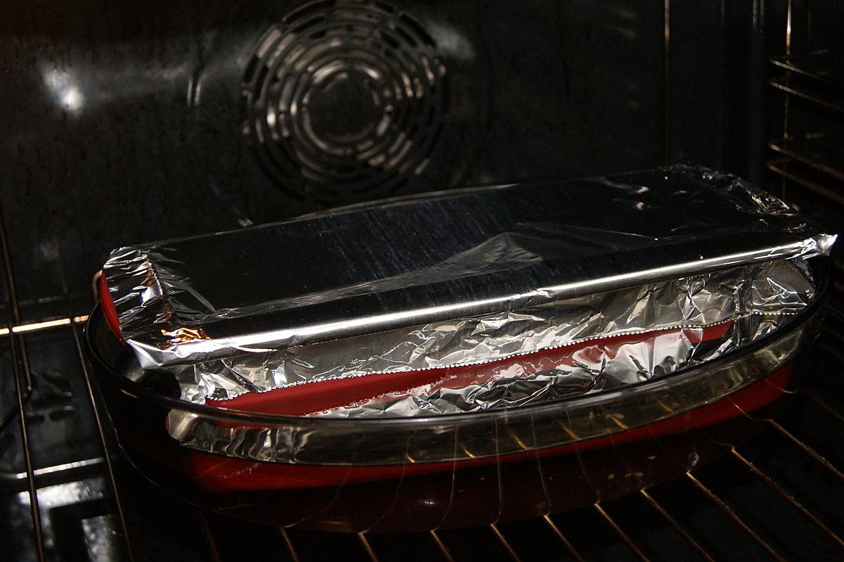 Puis prendre un plat plus grand que le moule à cake, afin de pouvoir mettre de l’eau à mi-hauteur et le moule à cake dedans. Pour faire une cuisson au bain marie au four.