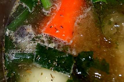 Puis l'oignon, les carottes, le vert de poireau, le celeri préalablement lavés et épluchés.