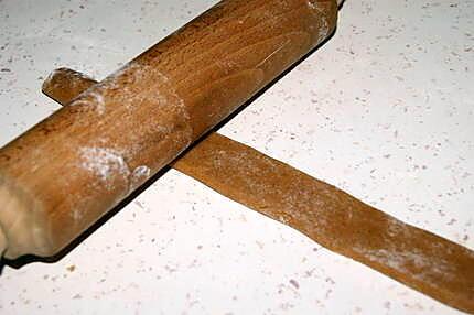 Applatir la pâte au rouleau jusqu'à une épaisseur de 5 mm, sur un plan de travail fariné.