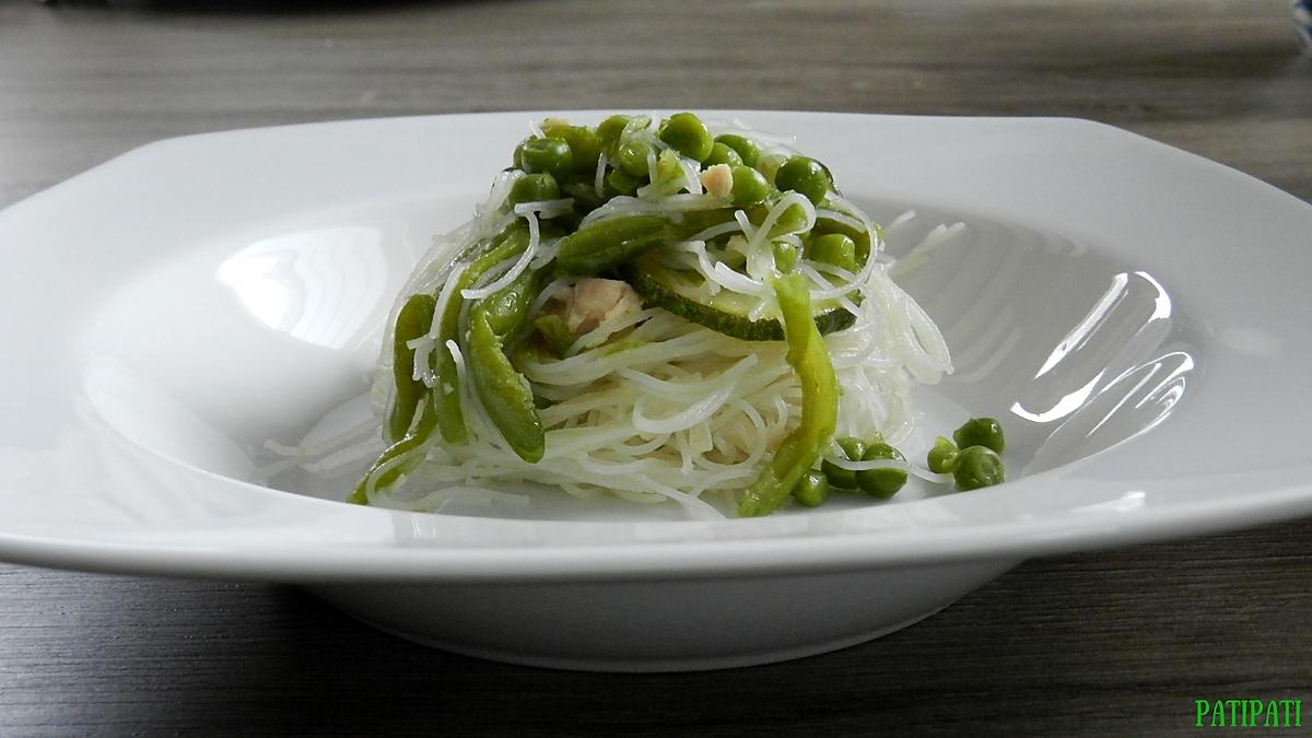 Vermicelles de riz aux légumes verts et dés de dindonneau
