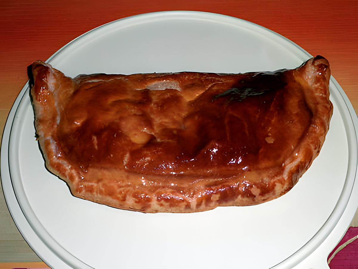 Après avoir fait le tour de mon frigo et de mes placards pour trouver un dessert pour ce soir, j'ai fait ce maxi chausson de la façon suivante.