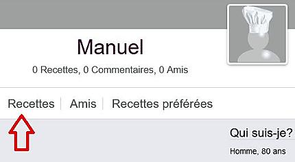 Pour publier une recette, il faut cliquer sur "Recettes" et te laisser ensuite guider...