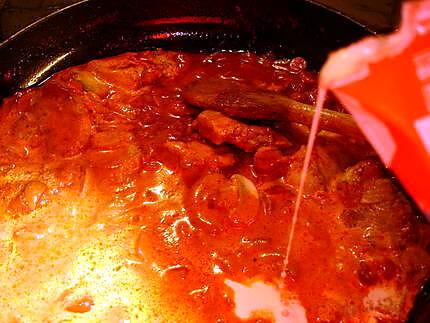Baissez le feu, versez le madère et le concentré de tomates. Laissez mijoter 2 à 3 min.