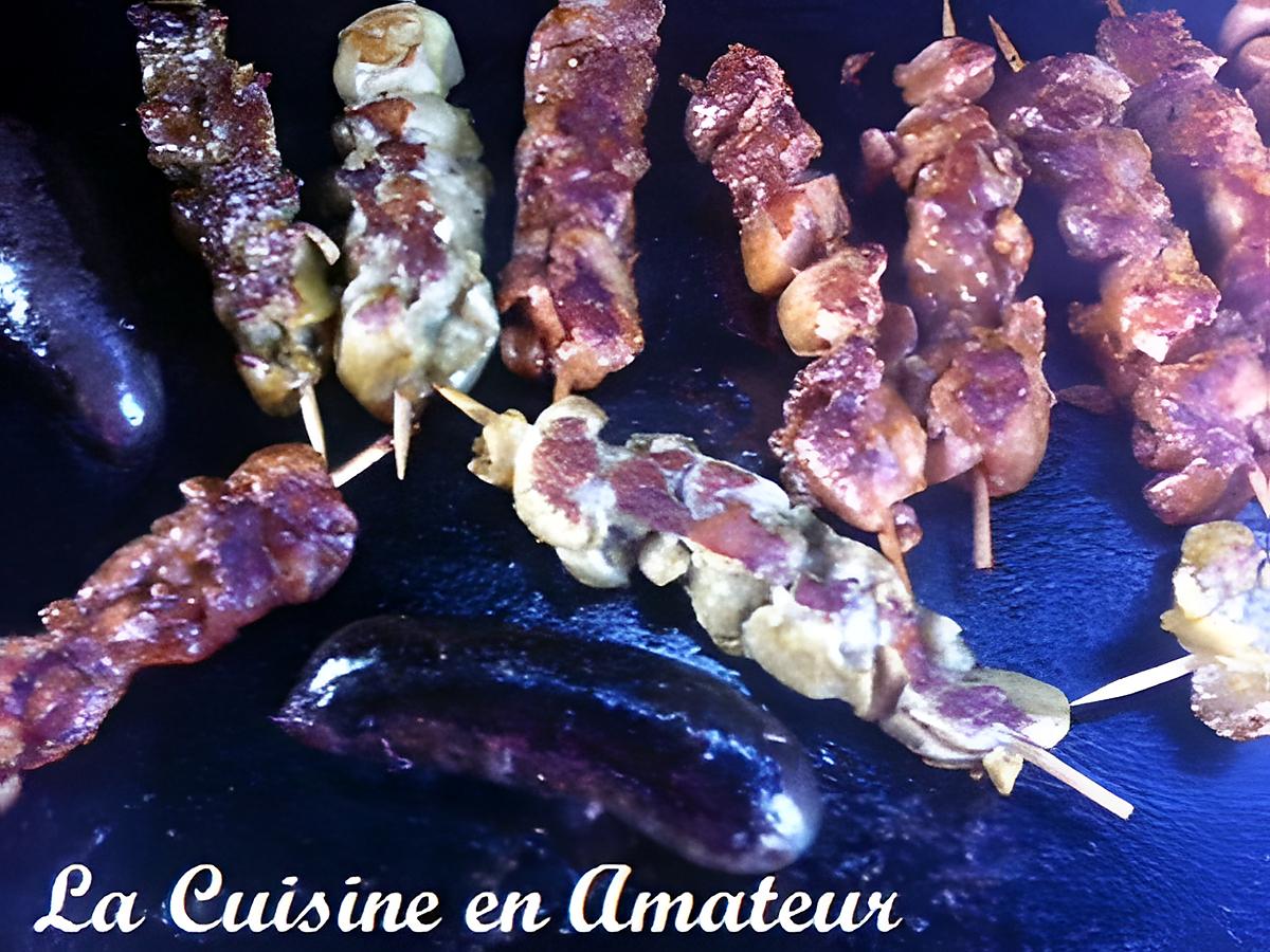 Piquer la viande dans la brochette et cuire sur le barbecue ou la plancha.